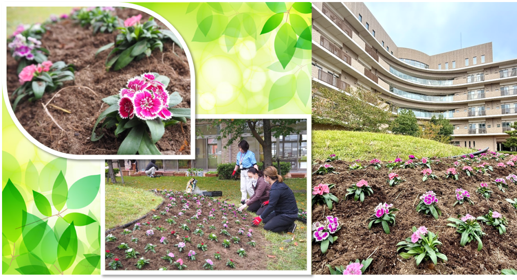 令和7年10月31日(金)にめずら荘中庭のなでしこを職員で植え替えました。