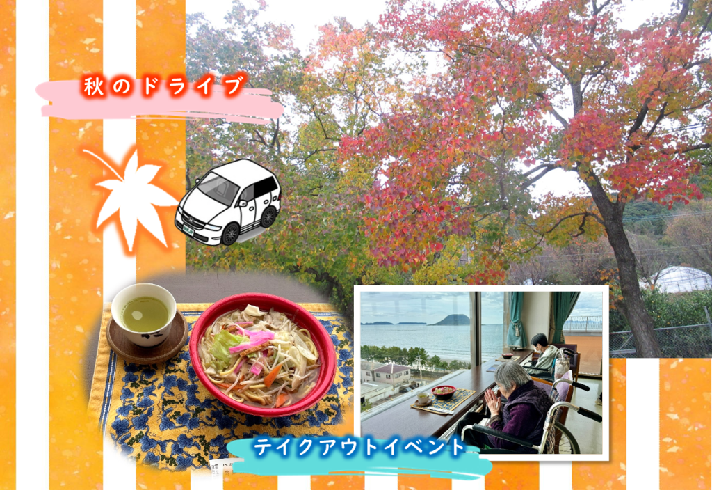 2025.12.15 ブログ 紅葉見学、テイクアウトイベントを行いました【特別養護老人ホーム】 11月中旬に七山方面へドライブへ出かけ、紅葉見学をしてきました。 また、11月13日に市内の食堂よりちゃんぽんをテイクアウトし、 6階展望喫茶にて召し上がっていただきました。 一覧に戻る